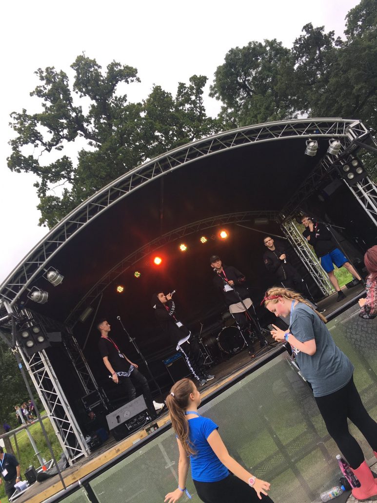 The 6m Prolyte Arc Stage Roof is the smallest of the arc family, the roof is built on a Layher event deck base. The roof is assembled using prolyte truss. The roof width and depth is fixed. The arc curved lines of this structure mean that it fits in at a huge amount of events, and is also quick to install and remove. The stage is supplied with solid PVC walls, and there are various branding opportunities.